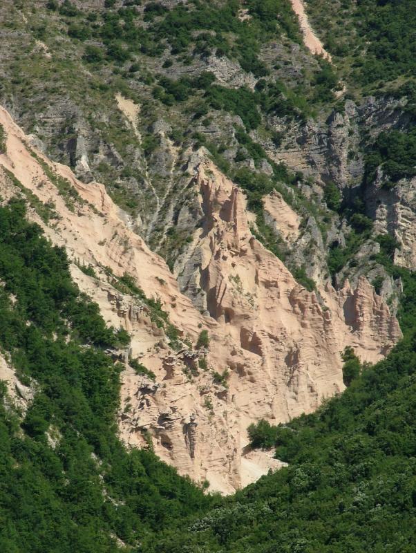 Nel cuore del Parco Nazionale dei Monti Sibillini, in un contrasto sorprendente con l'azzurro del Lago di Fiastra, si nasconde uno dei paesaggi più spettacolari e inattesi delle Marche: le Lame Rosse. Questa suggestiva formazione geologica è spesso paragonata a un canyon in miniatura o ai calanchi del sud Italia. Si tratta di pinnacoli e guglie di ghiaia e sabbia rossastra, cementati da ossidi di ferro, che si sono modellati nel tempo grazie all'erosione differenziale degli agenti atmosferici sui depositi morenici e fluviali. Il risultato è un anfiteatro naturale di piramidi di terra dal colore intenso che si innalzano verso il cielo.