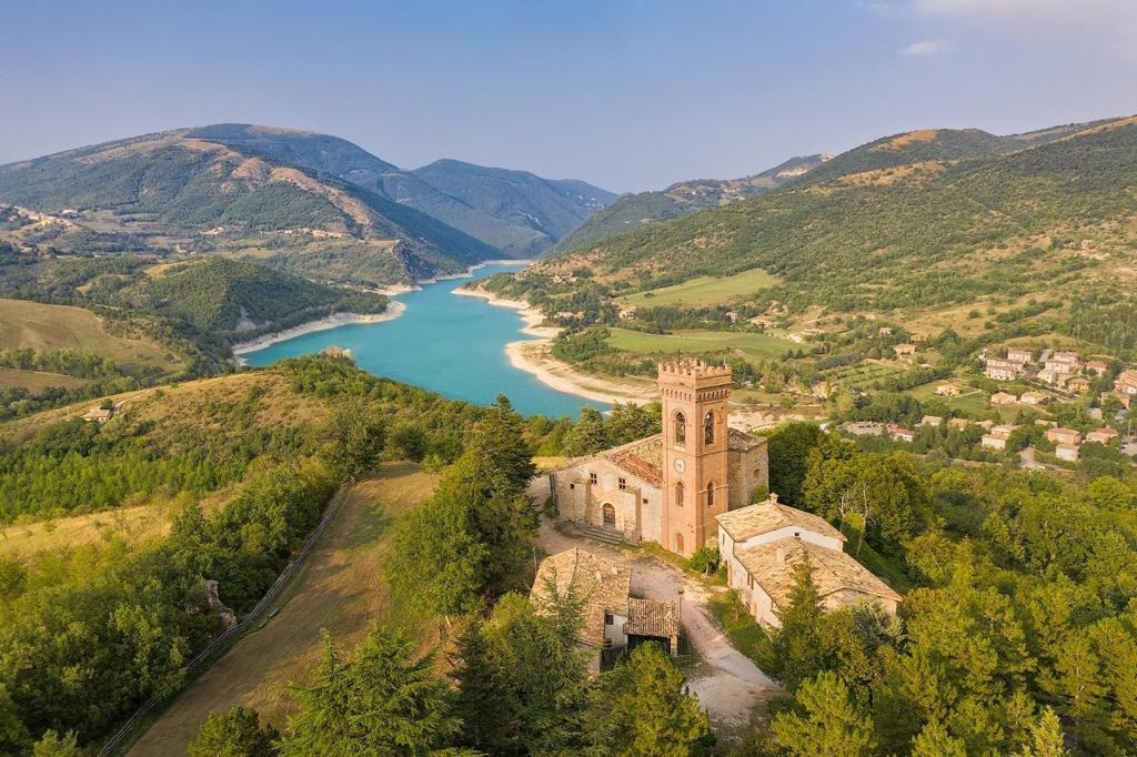 Un breve percorso a piedi che unisce la visita storica a un panorama inatteso. Partendo dalla piazza, l'itinerario conduce ai ruderi del Castello dei Conti Magalotti, permettendo di visitare un antico torrione e camminare lungo le mura di cinta con vista sul lago. Si prosegue con la visita alla Chiesa di San Paolo (impianto romanico a tre navate), purtroppo inagibile dopo il sisma e ammirabile solo dall'esterno, che in origine conservava preziose opere d'arte, tra cui un gruppo ligneo policromo della Madonna con Bambino del XVI secolo e una tela di G.B. Gaulli, detto il Baciccia, del XVII secolo.
